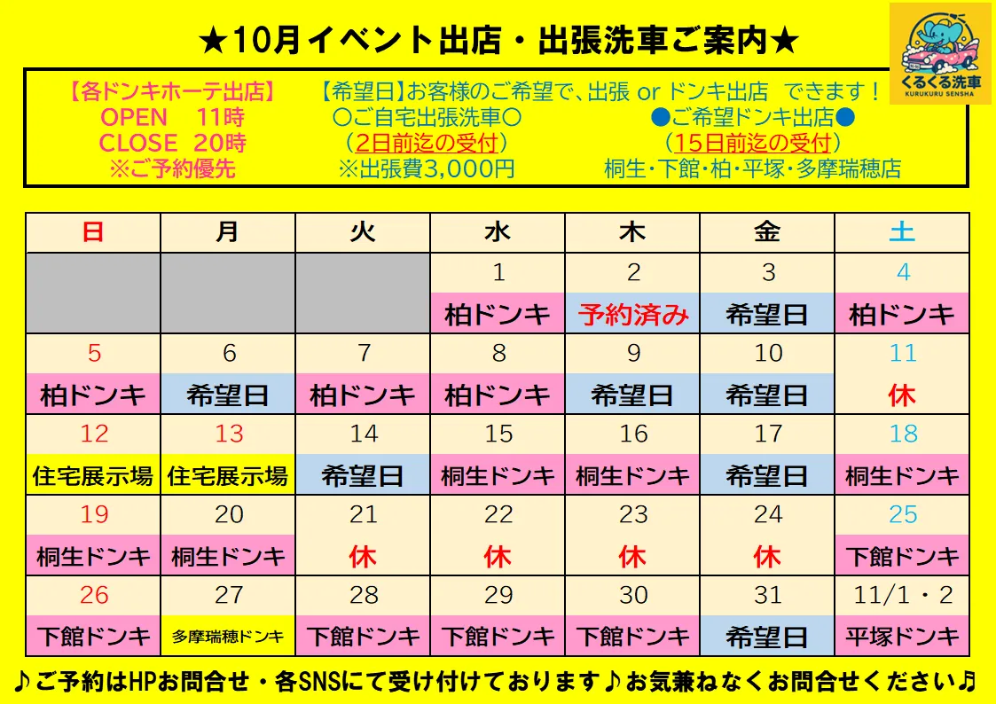 関東圏内のドン・キホーテ駐車場でのイベント出店を中心に、洗車とコーティング施工のご依頼を承っています。個人宅や法人様への出張対応も可能で、忙しい方にも利用しやすい環境を整えています。専用シャンプーを使ったきめ細かな泡でボディや窓などを手洗いして、細部まで美しい仕上がりにこだわっています。コーティング施工車のメンテナンスケアから新車の輝きを保つ本格的なコーティングまで、幅広いニーズにお手頃な価格でお応えします。経験豊富な専任スタッフが丁寧に作業することで、群馬にて目に見える変化を生み出します。