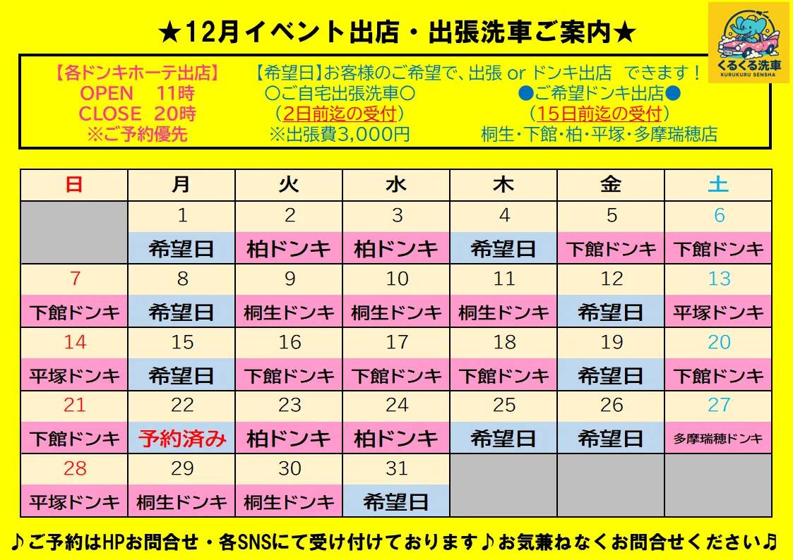 つきましては、年末ご利用ご希望の際は「お問い合わせ」からご予約頂けますと幸いです。