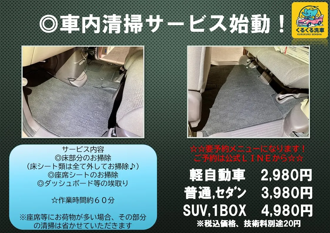 『くるくる洗車』公式LINEより24時間かんたん予約可能🎶